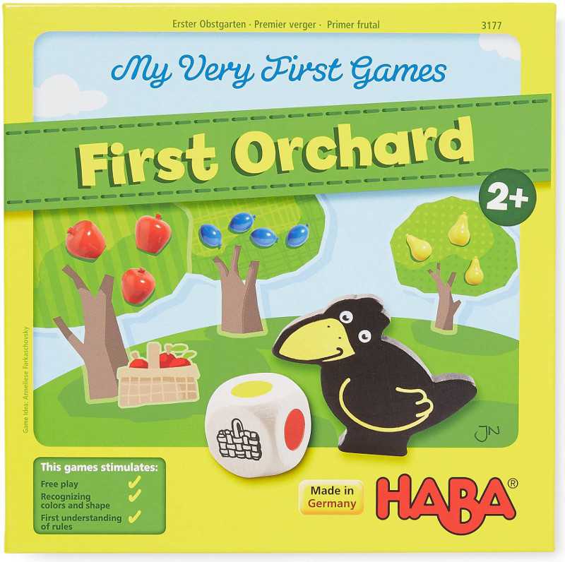 One of the games we started playing is called First Orchard. In this game, players cooperate to harvest fruit from an orchard before it gets discovered by a raven. If all of the fruit is removed before the raven appears, everyone wins; if the raven makes it to the orchard before all of the fruit has been harvested, everyone loses.