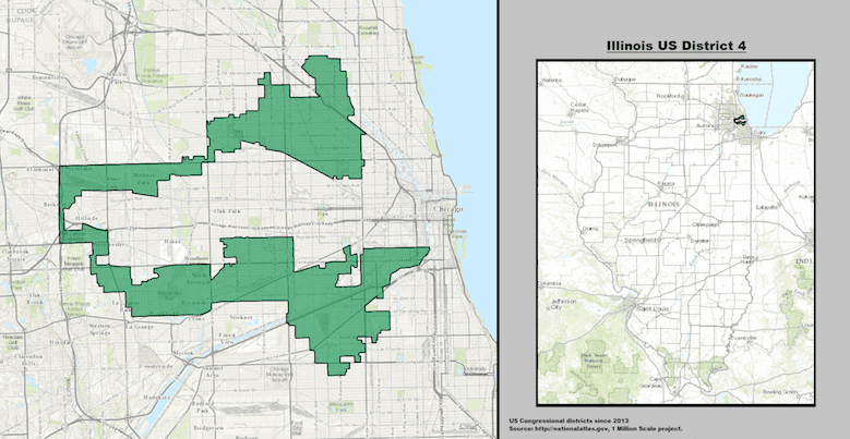 Removed from context, the fourth district of Illinois looks highly suspicious. Its meandering shape through Chicago and out into the 'burbs suggests that there could be some packing going on. And indeed there is, but the reasoning behind it is different than you might expect.